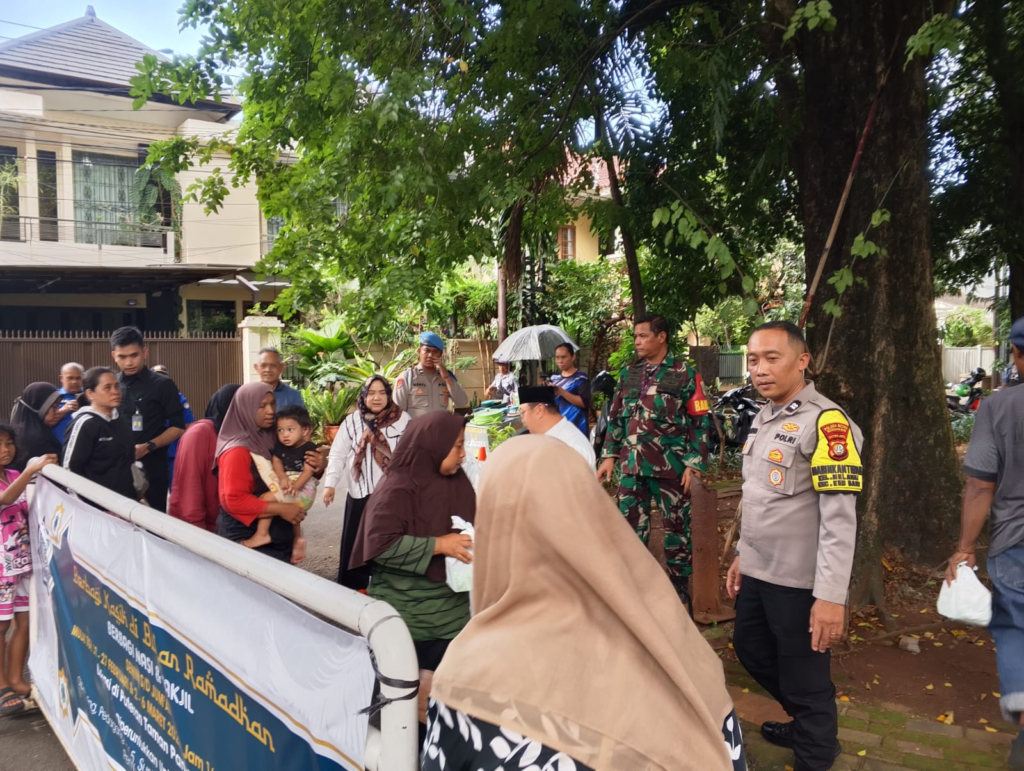 Jakarta – Dalam rangka menjaga situasi kamtibmas tetap aman dan kondusif selama bulan suci Ramadhan, Bhabinkamtibmas Kelurahan Melawai Aiptu Iswahyudi bersama Babinsa Sertu Suhadi melaksanakan monitoring dan pengamanan kegiatan pembagian takjil pada Rabu (25/02/2026) pukul 16.00 WIB.
