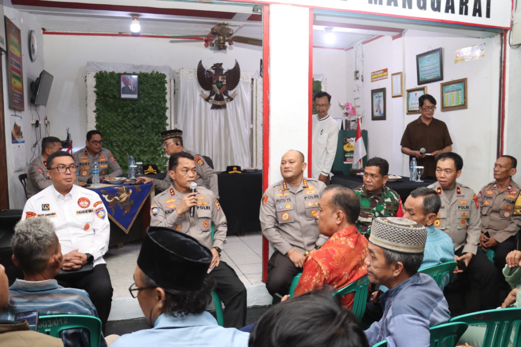 Jakarta Selatan, 20 Februari 2026 – Kapolres Metro Jakarta Selatan Kombes Pol I Putu Yuni Setiawan mendampingi Kakorbinmas Baharkam Polri Irjen Pol. Kalingga Rendra Raharja, Dirbintibmas Korbinmas Baharkam Polri Brigjen. Pol. M. Rudy Syafirudin, Dirbinpotmas Korbinmas Baharkam Polri Brigjen. Pol. Ahmad Zaenudin, serta Dirbinmas Polda Metro Jaya Brigjen Harri Muharram Firmansyah dalam kegiatan Ngopi Kamtibmas yang digelar di Pos Satkamling wilayah hukum Polres Metro Jakarta Selatan, tepatnya di Sekretariat RW 012 Kelurahan Manggarai, Kecamatan Tebet, Jakarta Selatan.