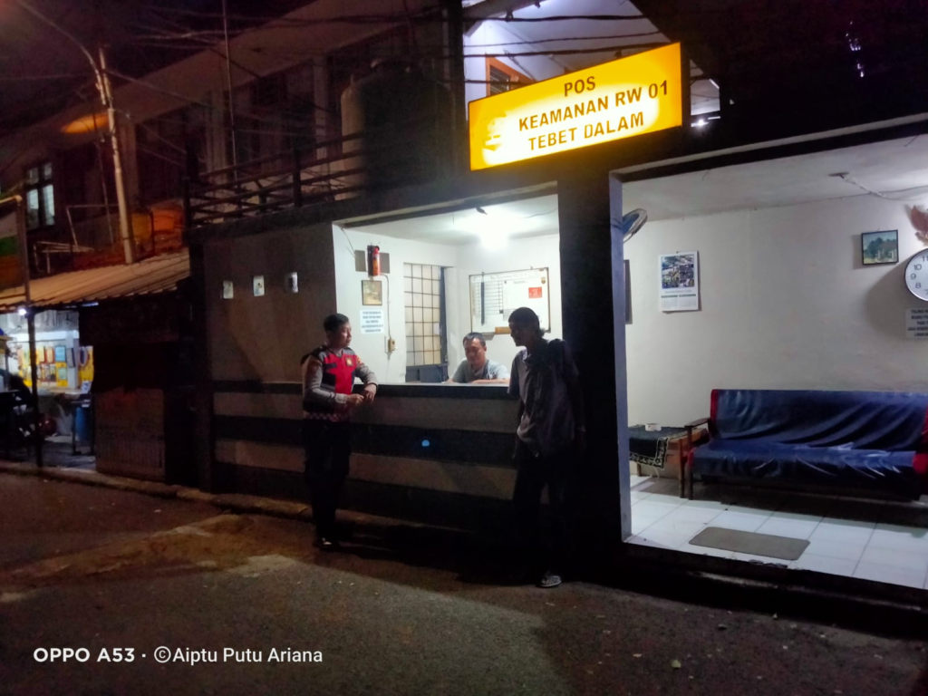Jakarta Selatan – Guna menjaga situasi keamanan dan ketertiban masyarakat pada malam hari, personel Samapta Polsek Tebet melaksanakan patroli dialogis di Pos Keamanan RW 01 Pemukiman Tebet Dalam, Kelurahan Tebet Barat, Kecamatan Tebet, Jakarta Selatan, pada Senin (6/4/2026) pukul 21.45 WIB hingga selesai.
